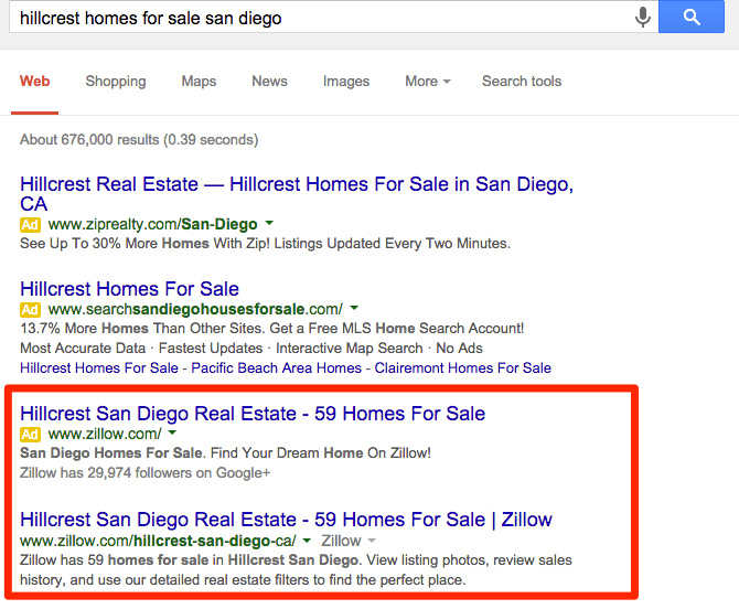 But they also target small searches like: “hillcrest homes for sale san diego”