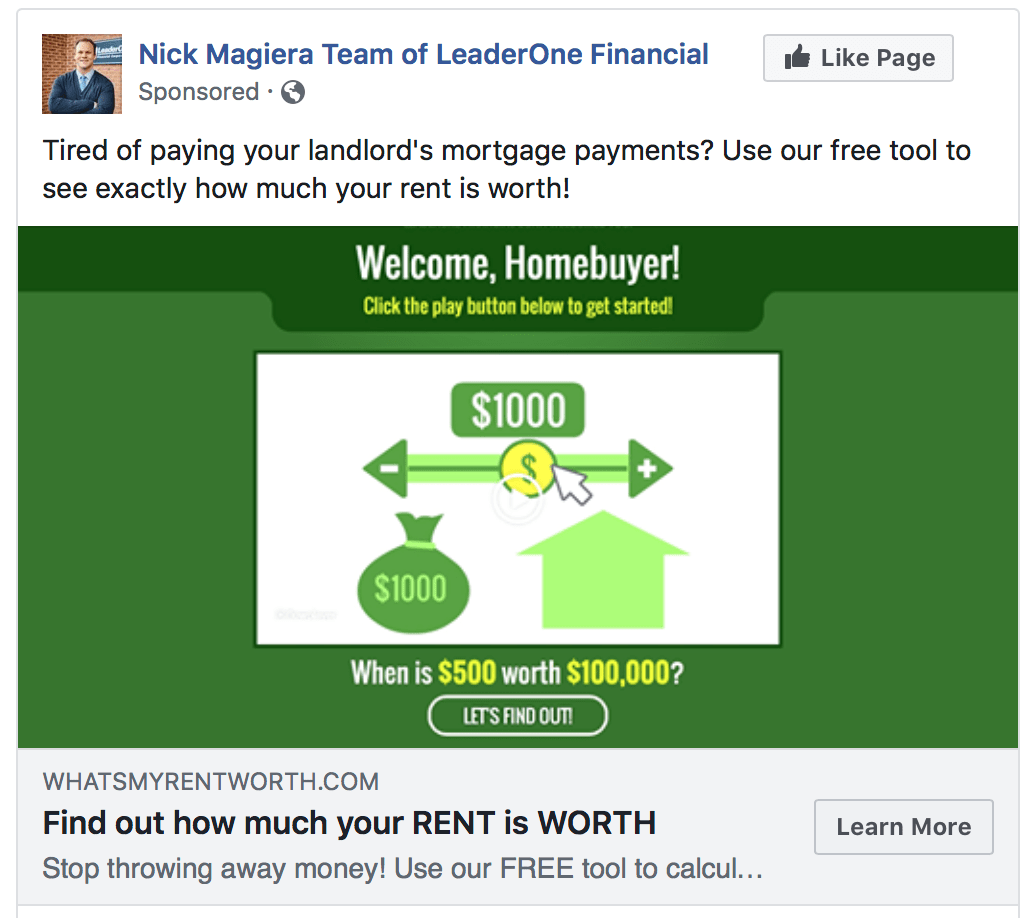 But also very useful for your mortgage business! Now all of your clients and all of your referral partners will see your Facebook retargeting ad everywhere they go after they visit your site.
