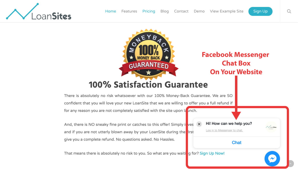 In today’s Facebook-driven world, the best live chat on your mortgage website is most likely through Facebook Messenger. This links your website directly with your Facebook Business Page so that your mortgage website visitors can chat directly with you on your website through Facebook. Cool, right!?