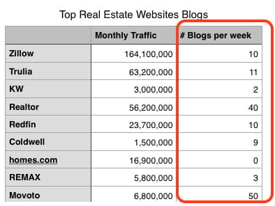 The first thing we learned from these top mortgage websites is that they tend to focus on Google as a traffic source. And Google loves fresh content on websites.